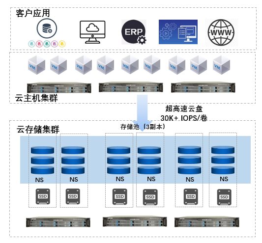 隨著數據爆發式增長,存儲模式逐漸從集中存儲向分布式存儲轉變。分布式存儲通過可擴展的系統結構,利用多臺服務器分擔存儲風險等,具有高靈活性、高可靠、高效率等優勢。某運營商在實際應用中采用分布式存儲作為存儲底座,為用戶提供超高性能彈性卷服務,支撐桌面辦公、企業ERP、門戶網站等高性能訴求業務。如何在保證存儲系統高可靠、線性擴展的同時滿足快速桌面發放要求、避免啟動風暴發生及多種高性能業務場景正常運轉,成為該運營商關注重點。