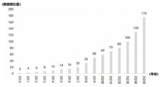 從1932年磁鼓存儲器誕生至今,需求推動著存儲器不斷更新迭代,已發展為磁帶存儲、光盤、U盤、硬盤等。但隨著科技的發展,企業的數據規模呈指數級上升。據IDC數據顯示,全球數據將從2016年的16ZB增至2025年的175ZB,增長9.94倍。其中,中國數據圈增速最為迅速,2018年新產生的數據為7.6ZB,成為全球第一大數據生產國,預計2025年將增至48.6ZB。龐大的數據體量對存儲需求大幅增長,也推動著存儲的創新與發展。