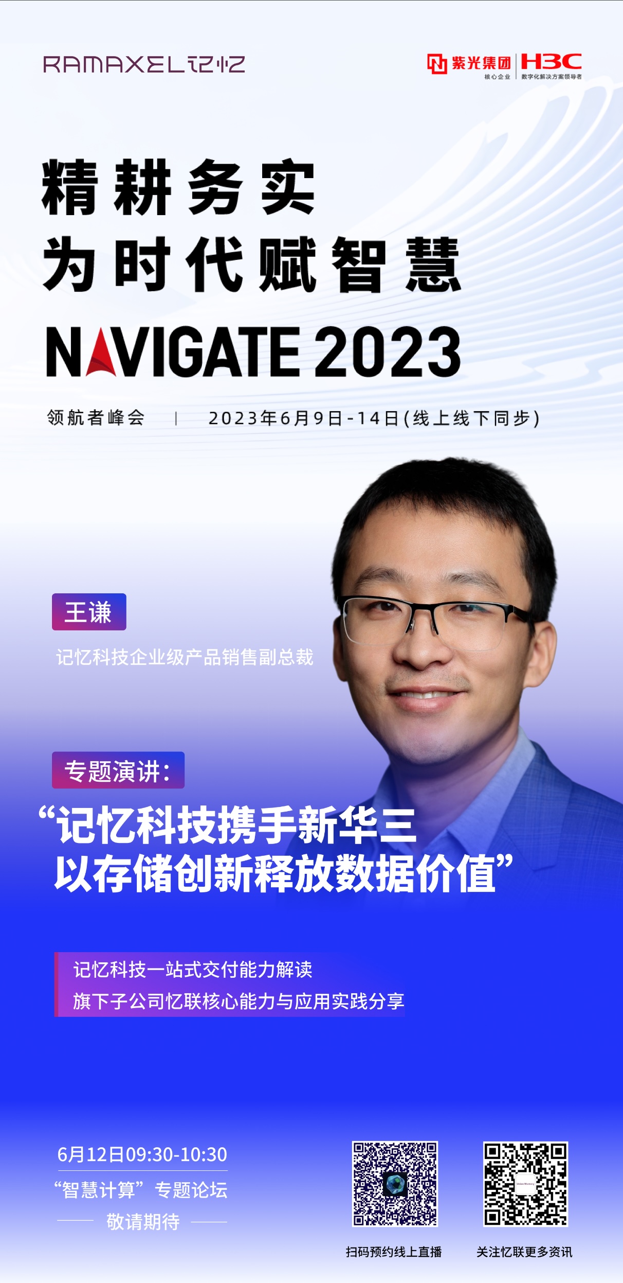 憶聯母公司記憶科技作為IT硬件領域中國領先品牌部件提供商受邀出席。同時,記憶科技企業級產品銷售副總裁王謙將在6月12日上午“智慧計算”專題論壇中,帶來以《記憶科技攜手新華三,以存儲創新釋放數據價值》為主題的專題演講,分享記憶科技在數字時代下的存儲核心能力與創新實踐。敬請期待!