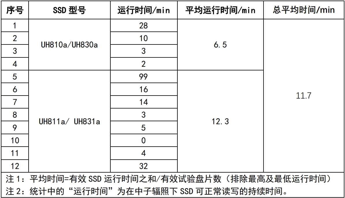 試驗結果表明,憶聯 UH8 系 SSD 平均運行時間達 11.7 分鐘,充分驗證了憶聯 UH8 系 SSD 在較高的中子通量自然環境條件下,具備可抵抗一定中子輻照的高可靠性,自帶的 ECC、RAID 數據恢復、重讀等功能,能夠及時糾正中子帶來的比特翻轉等問題,保證在 SSD 使用壽命范圍內正常運行,可為高海拔數據中心提供高可靠的存儲保障。