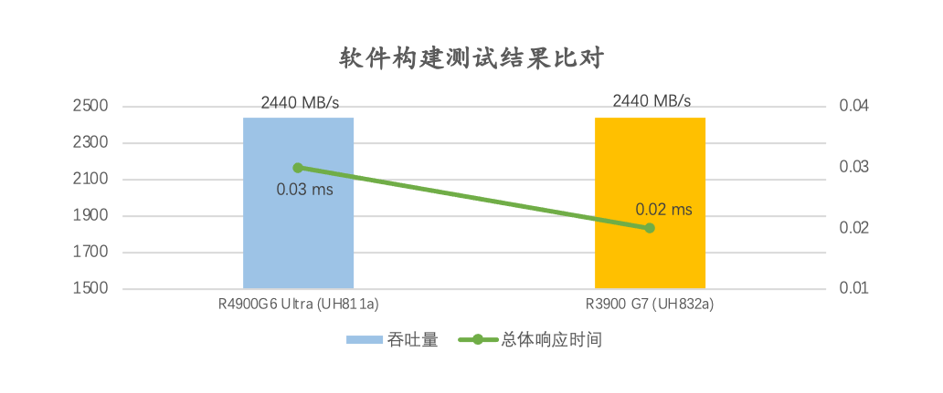 在本次測試中,搭載UH832a的H3C UniServer R3900 G7服務器,共完成250個基因組作業的處理,吞吐量高達21236 MB/s,總體響應時間為0.07毫秒。這一成績突破了之前H3C UniServer R4900G6 Ultra服務器的數據(0.10毫秒),更進一步刷新了該榜單的記錄。