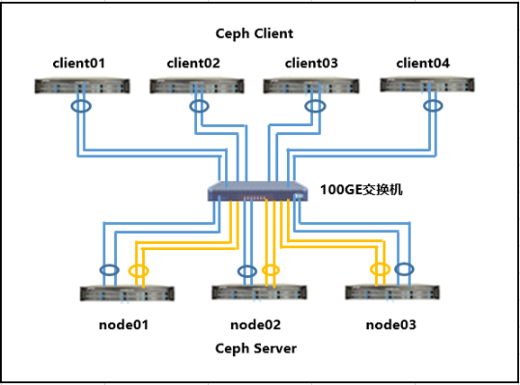 2端口100GE以太網卡 每臺服務節點配置2張網卡,每臺客戶端配置單張網卡 |