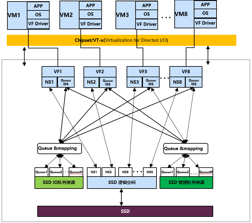 3、各 VF 之間的 IO 業(yè)務(wù)性能相互隔離,不因某一個(gè) VF 的性能變化而導(dǎo)致其他 VF 性能的波動(dòng)。