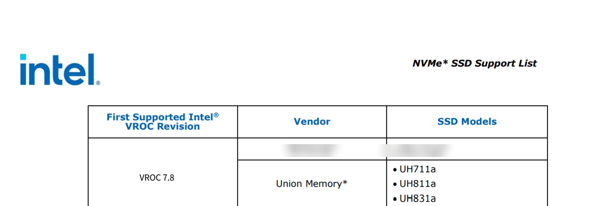 近日,深圳憶聯信息系統有限公司(簡稱:憶聯)的數據中心級固態硬盤 UH711a以及企業級固態硬盤UH811a/UH831a與英特爾VROC 7.8完成兼容認證,測試期間,整體運行穩定,在功能、性能及兼容性方面表現良好。