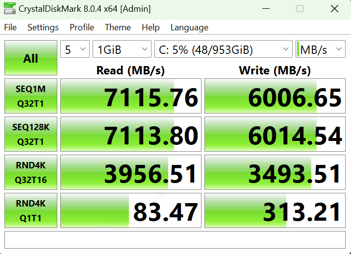 ?IO加速、性能卓越:AM541搭載憶聯新一代Jaguar6020主控,內置高容量SRAM及IO加速模塊。順序讀寫速度最高可達7000 MB/s、 6000 MB/s ,4KB隨機讀寫速度最高可達900K IOPS、850K IOPS。