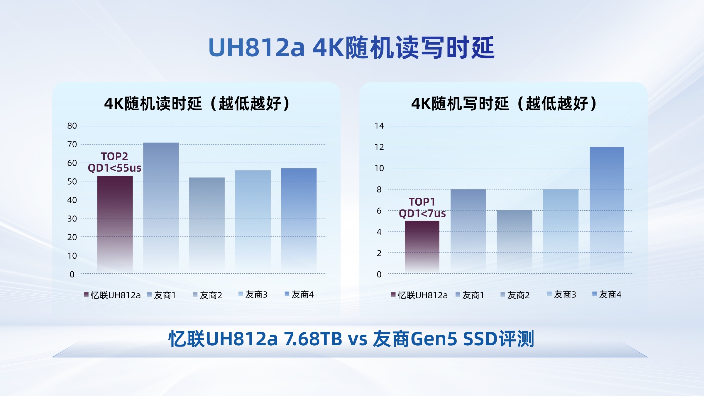在高性能計(jì)算環(huán)境中,憶聯(lián)UH812a/UH832a的超低時(shí)延特性突出。4K隨機(jī)讀QD1時(shí)延<55μs,相比上一代(PCIe 4.0 SSD UH811a系列)改善43%,4K隨機(jī)寫(xiě)性能位列友商TOP1,隨機(jī)讀對(duì)比國(guó)際友商優(yōu)25%。無(wú)論是運(yùn)行復(fù)雜的模擬程序還是處理海量數(shù)據(jù)集,都能達(dá)到微秒級(jí)響應(yīng),為高性能計(jì)算與數(shù)據(jù)密集型應(yīng)用筑牢根基。