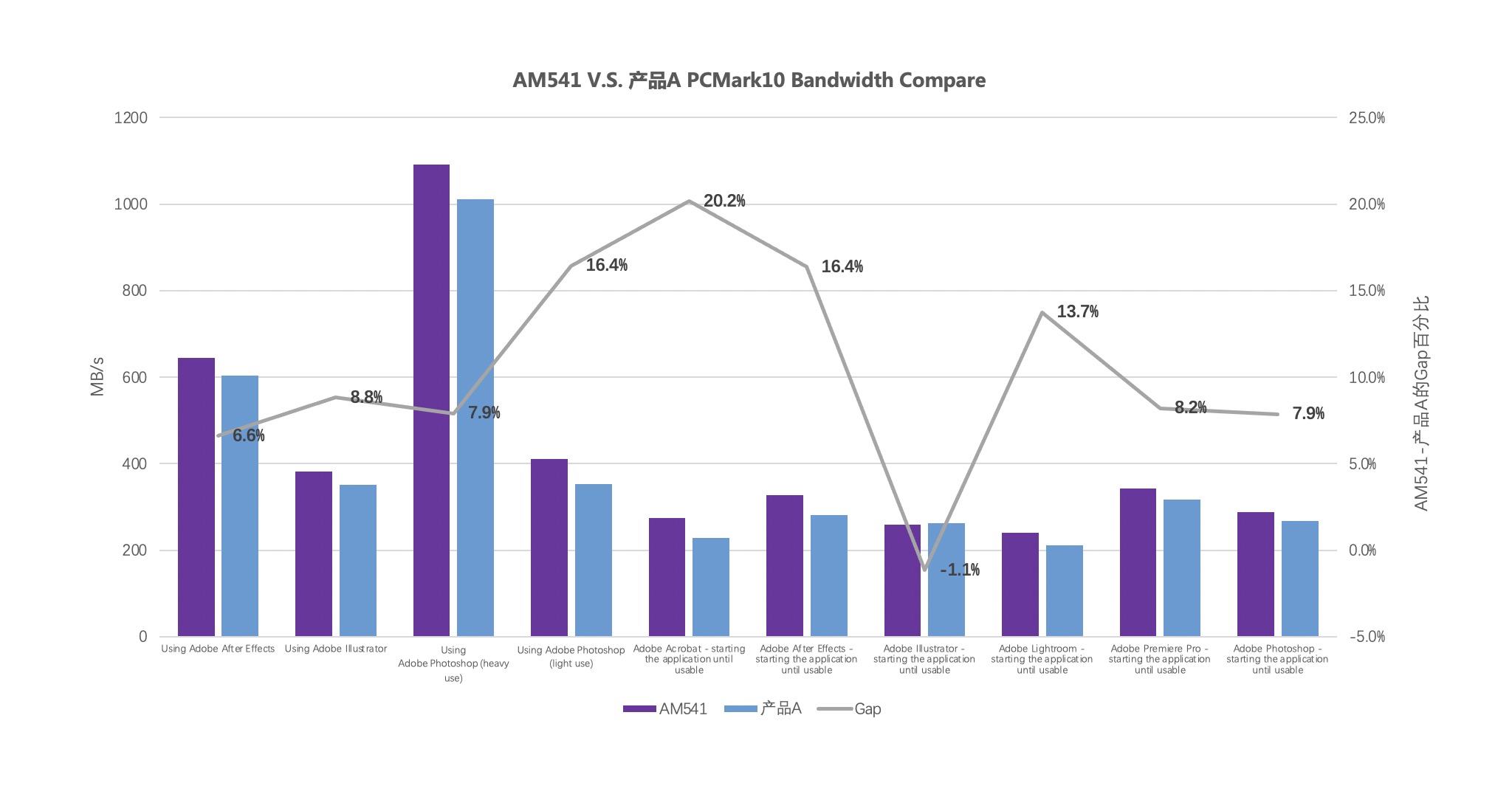 在PCMark10測(cè)試中,AM541跑分超過了3700,比友商同類產(chǎn)品A高出約300分,在辦公、游戲、內(nèi)容創(chuàng)作等多個(gè)場(chǎng)景中性能領(lǐng)先,其中,在常見的數(shù)字內(nèi)容創(chuàng)作中,AM541平均比友商同類產(chǎn)品快10.5%。