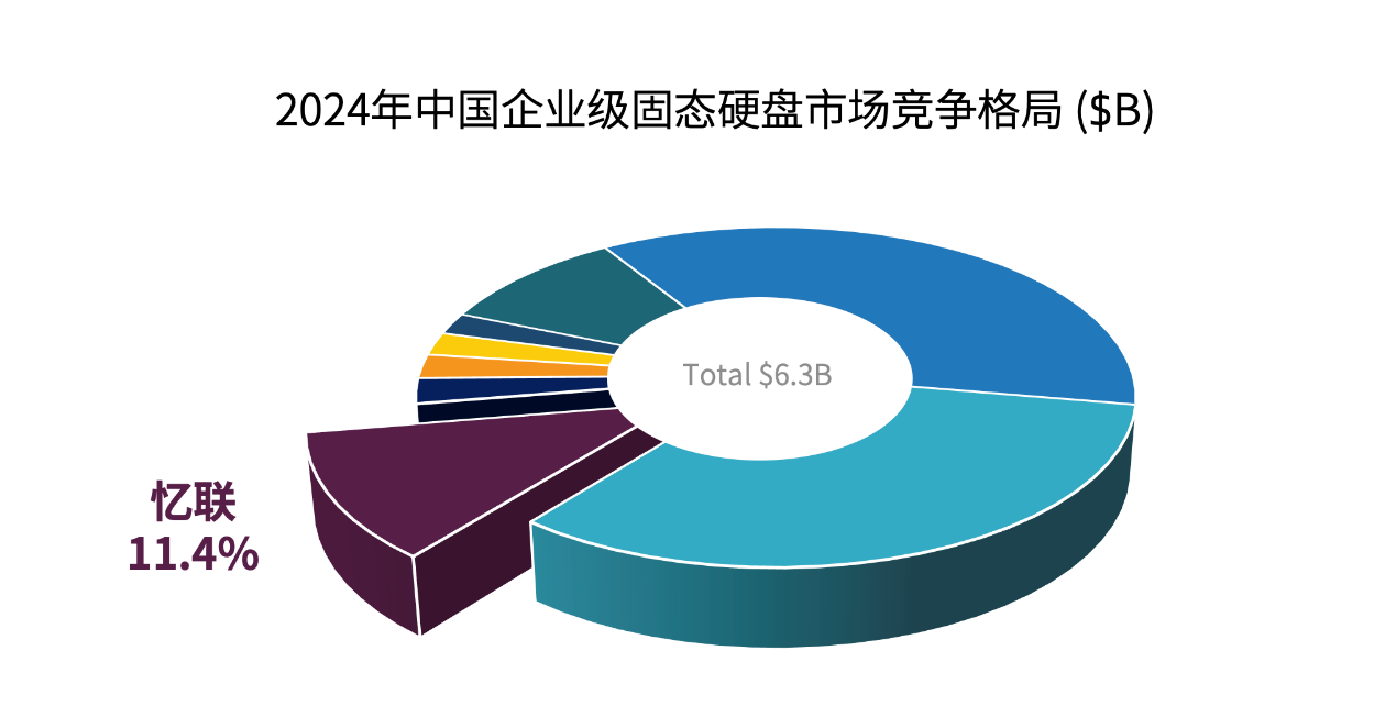 全球權威調(diào)研機構IDC最新《2024中國企業(yè)級固態(tài)硬盤市場跟蹤報告》顯示,憶聯(lián)以11.4%的市場份額(覆蓋PCIe/SATA/SAS接口類型)問鼎中國企業(yè)級固態(tài)硬盤市場國產(chǎn)廠商冠軍。