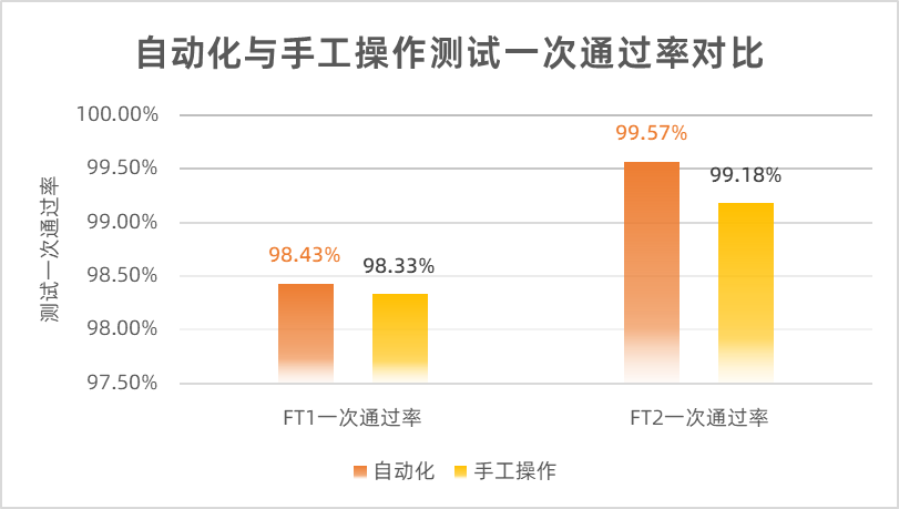 圖2. 自動化解決方案與手工操作一次通過率對比
