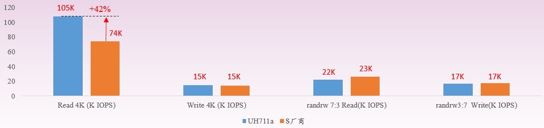 UH711a面向數(shù)據(jù)中心級(jí)的讀密集場(chǎng)景、混合場(chǎng)景、寫密集場(chǎng)景等業(yè)務(wù)場(chǎng)景和各類IO pattern,可提供全面的性能、功耗調(diào)優(yōu)。尤其在數(shù)據(jù)庫、塊存儲(chǔ)、對(duì)象存儲(chǔ)、海量存儲(chǔ)等對(duì)隨機(jī)IOPS性能高要求場(chǎng)景下UH711a的性能顯著。在與國(guó)內(nèi)某互聯(lián)網(wǎng)客戶數(shù)據(jù)中心的合作中,通過使用憶聯(lián)UH711a,在混合讀寫滿負(fù)載業(yè)務(wù)場(chǎng)景下,存儲(chǔ)集群能耗比提升了12.5%。