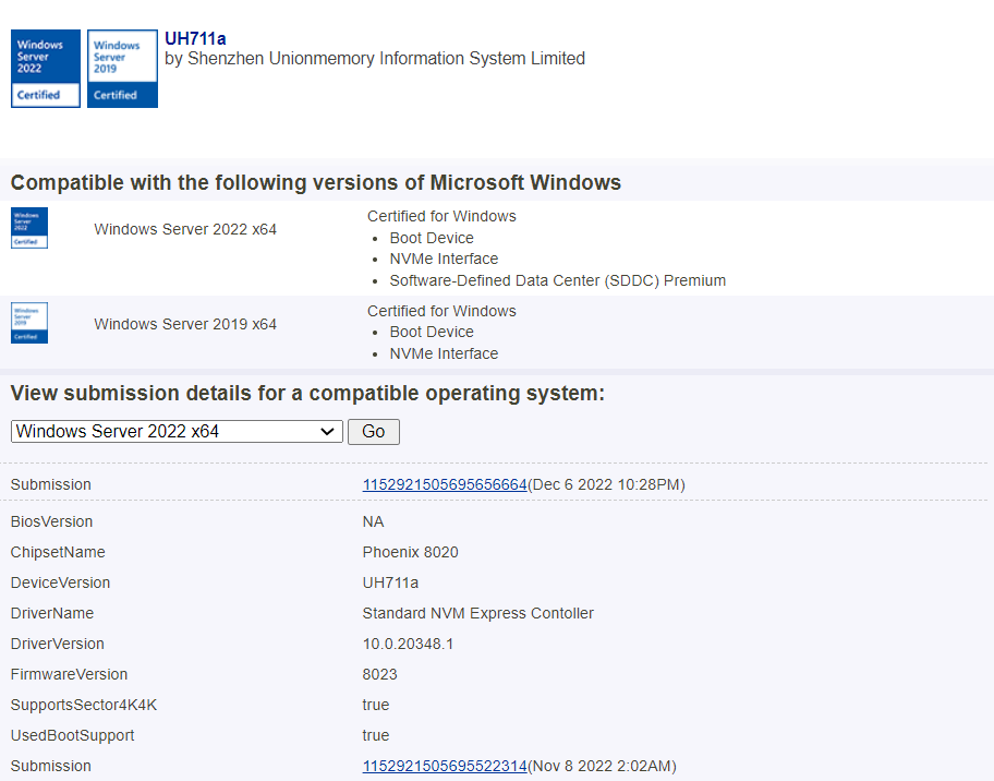 繼去年憶聯(lián)企業(yè)級SSD UH811a/UH831a通過微軟WHQL認證之后,憶聯(lián)旗下數(shù)據(jù)中心級固態(tài)硬盤UH711a經(jīng)過微軟中國技術中心的各項嚴格測試,也已正式通過了微軟WHQL認證。標志著憶聯(lián)UH711a與Windows操作系統(tǒng)可以達到100%兼容,可充分保障產(chǎn)品在計算機系統(tǒng)中的穩(wěn)定性。