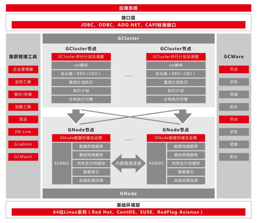 南大通用大規模分布式并行數據庫集群系統(簡稱GBase 8a MPP Cluster),是在GBase 8a系列存儲數據庫基礎上開發的一款Shared Nothing 架構的分布式并行數據庫集群,具備高性能、高可用、高擴展等特性,可為各種規模數據管理提供高性價比的通用計算平臺,廣泛用于支撐各類數據倉庫系統、BI系統和決策支持系統。
